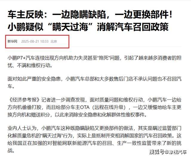 9月12日,国家市场监管总局ks8凯发官方网站官网公布的一则召回公告,将新势力头部车企小鹏汽车,推向了风口浪尖。